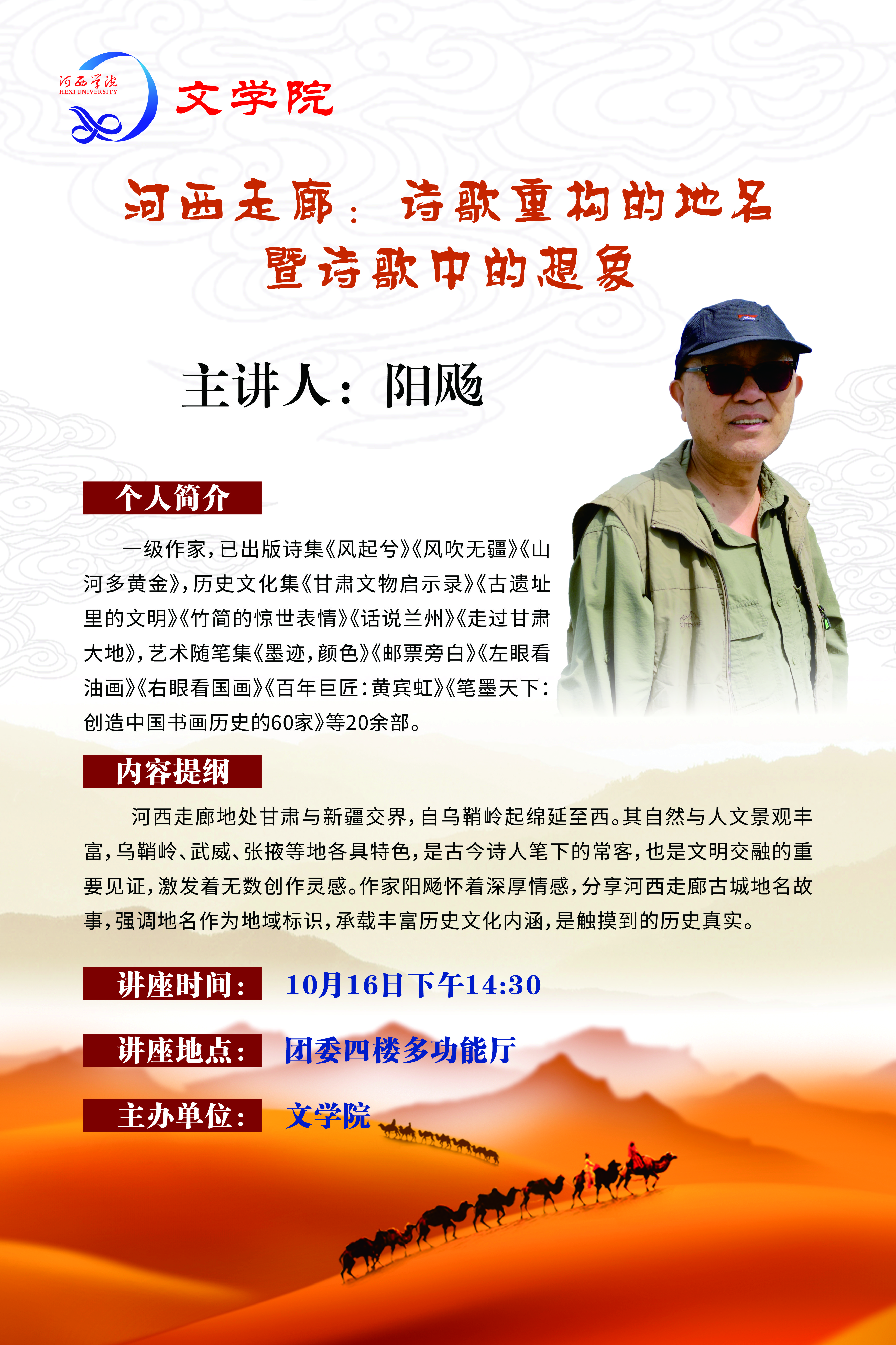 【学术报告】原兰州市文联金城杂志社 一级作家 阳飏 | 《河西走廊:诗歌重构的地名暨诗歌中的想象》