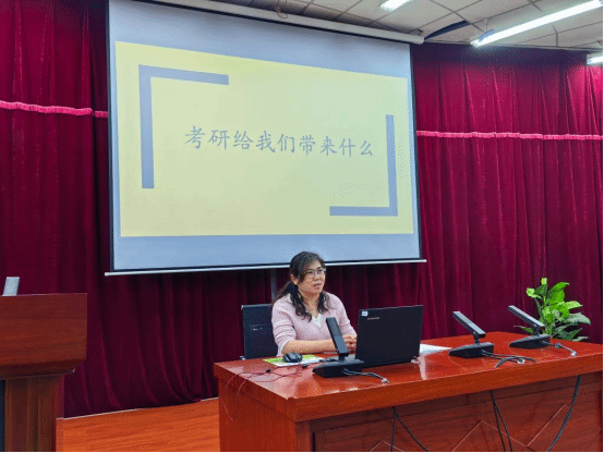 学院孙玉玲老师以“考研给我们带来了什么”为题做了考研动员。孙老师从国家发展的需要和个人成长的需要两个方面鼓励同学们要紧跟国家政策和发展需求,抓住机遇,通过考研提升自己的竞争力和服务社会的能力。