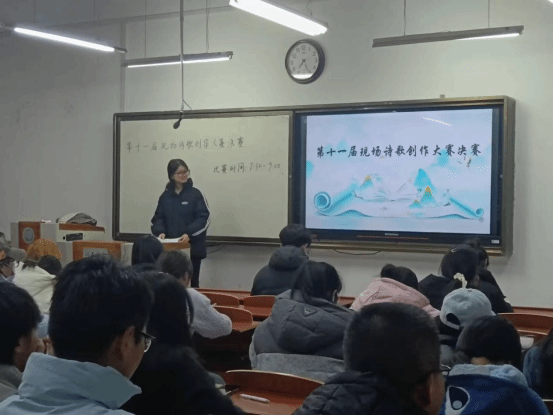 近日,以“新韵古风,时代诗声”为主题的第十一届现场诗歌创作大赛圆满落幕。本次大赛旨在弘扬中华传统文化,激发当代学生的诗歌创作热情,展现时代风貌与古典韵味的完美融合。初赛阶段,共有来自全校121名诗歌爱好者积极参与,他们用自己的笔触描绘出一幅幅生动的时代画卷,展现了新时代青年的文学素养与创作才华。经过严格评审,65名优秀选手脱颖而出,成功晋级决赛。决赛于11月24日晚上7点在8号教学楼102教室举行,现场气氛紧张而热烈。...