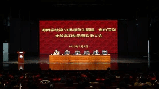3月9日上午,学院举行第33批师范生援疆实习支教及省内顶岗实习支教动员欢送大会。803名同学、6名教师前往新疆塔城地区、吐鲁番市等8个地区开展为期一学期的实习支教工作。学校党委常委、副校长赵柱出席会议,并为支教实习团授旗、赠书。相关职能部门、学院负责人、带队教师及支教实习全体学生等参加会议。会上,教务处对实习支教的前期准备、交通运输等工作进行了具体安排;第32批实习支教的学生和带队教师代表分别从工作、学习、生活等方面分享了实习支教工作经验与心得;...